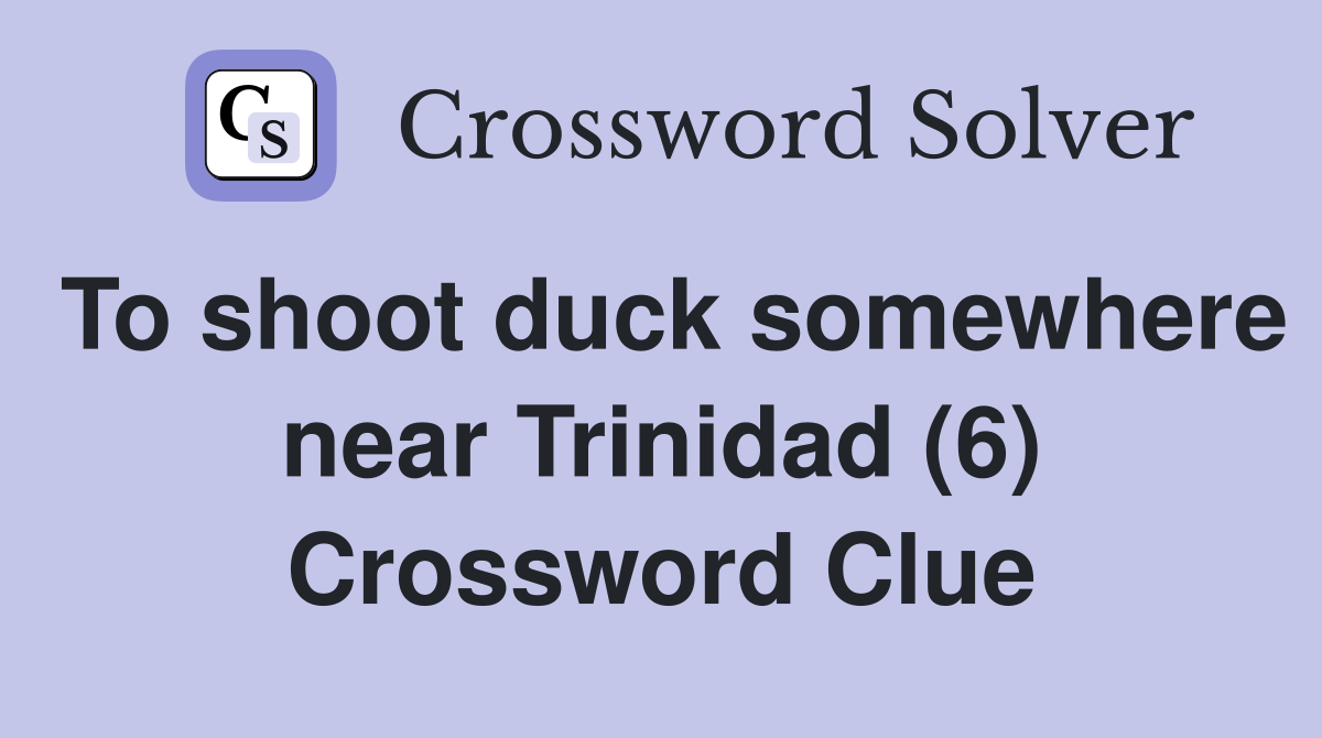 To shoot duck somewhere near Trinidad (6) Crossword Clue Answers