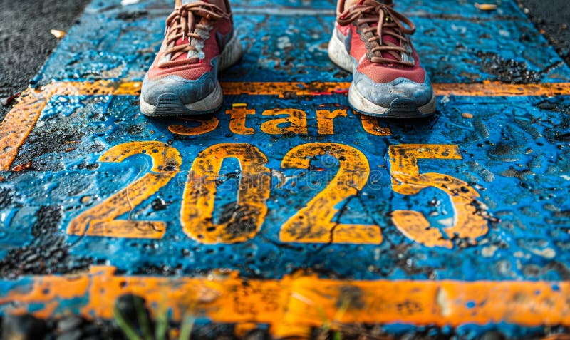 Runner Poised at the Starting Line Marked Start 2025 Metaphorically