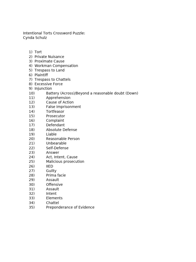 Intentional Torts Crossword Puzzle 1 PDF