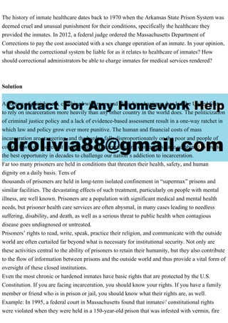 The history of inmate healthcare dates back to 1970 when the Arkansa pdf