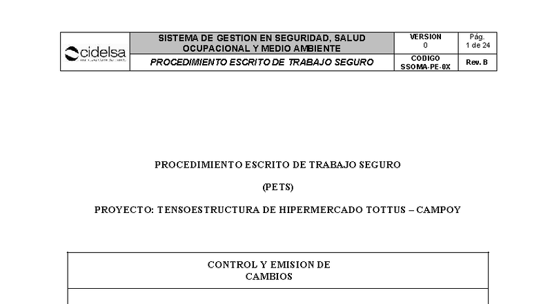 SISTEMA DE GESTION EN SEGURIDAD Y SALUD OCUPACIONAL: PETS TOTTUS CAMPOY
