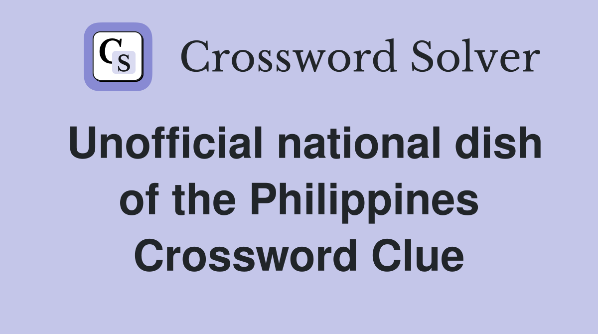 Unofficial national dish of the Philippines Crossword Clue Answers
