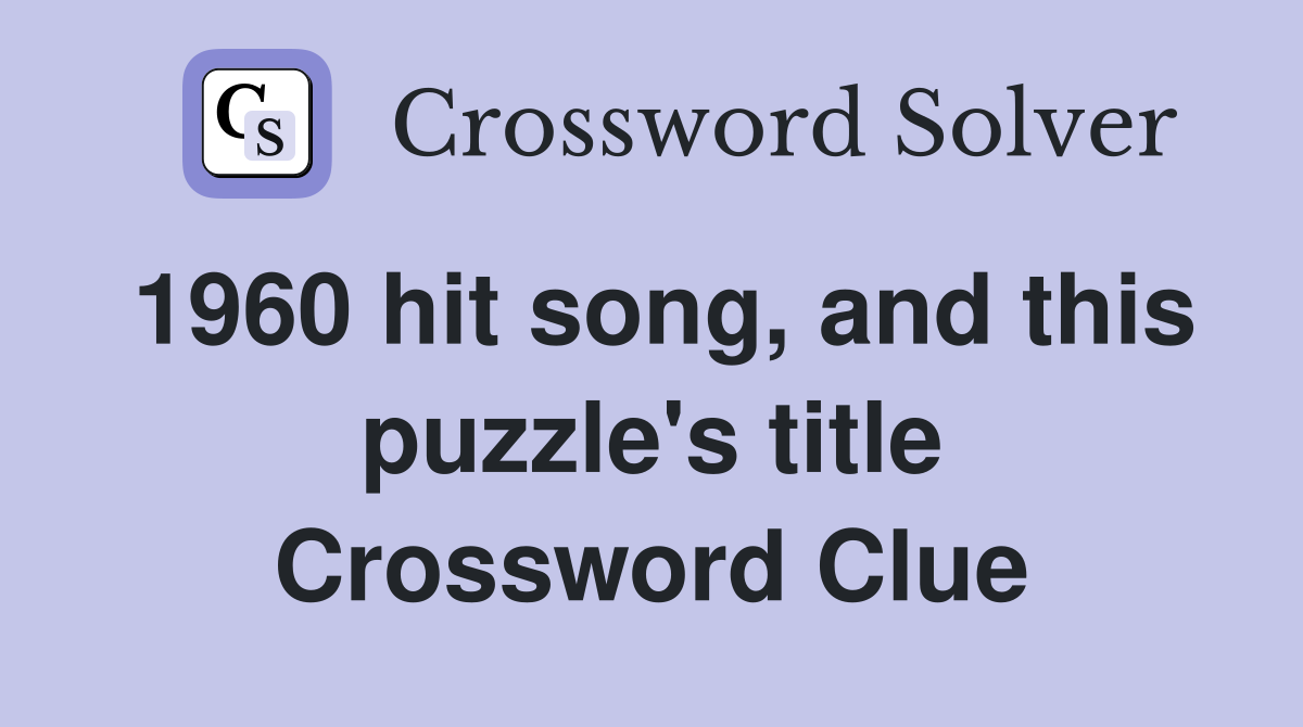 1960 hit song and this puzzle #39 s title Crossword Clue Answers