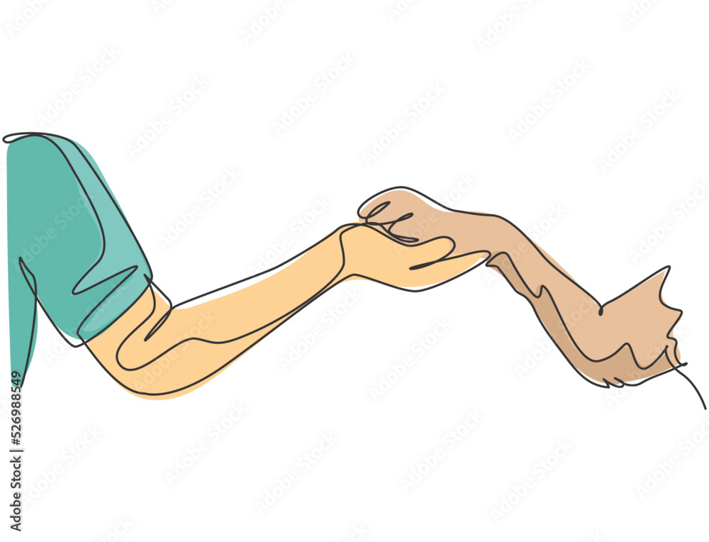 Continuous one line drawing two Friends trust helping holding hands