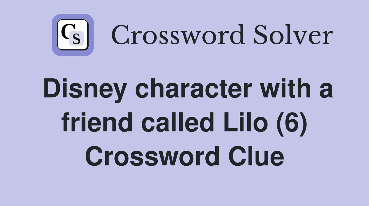 Disney character with a friend called Lilo (6) Crossword Clue Answers