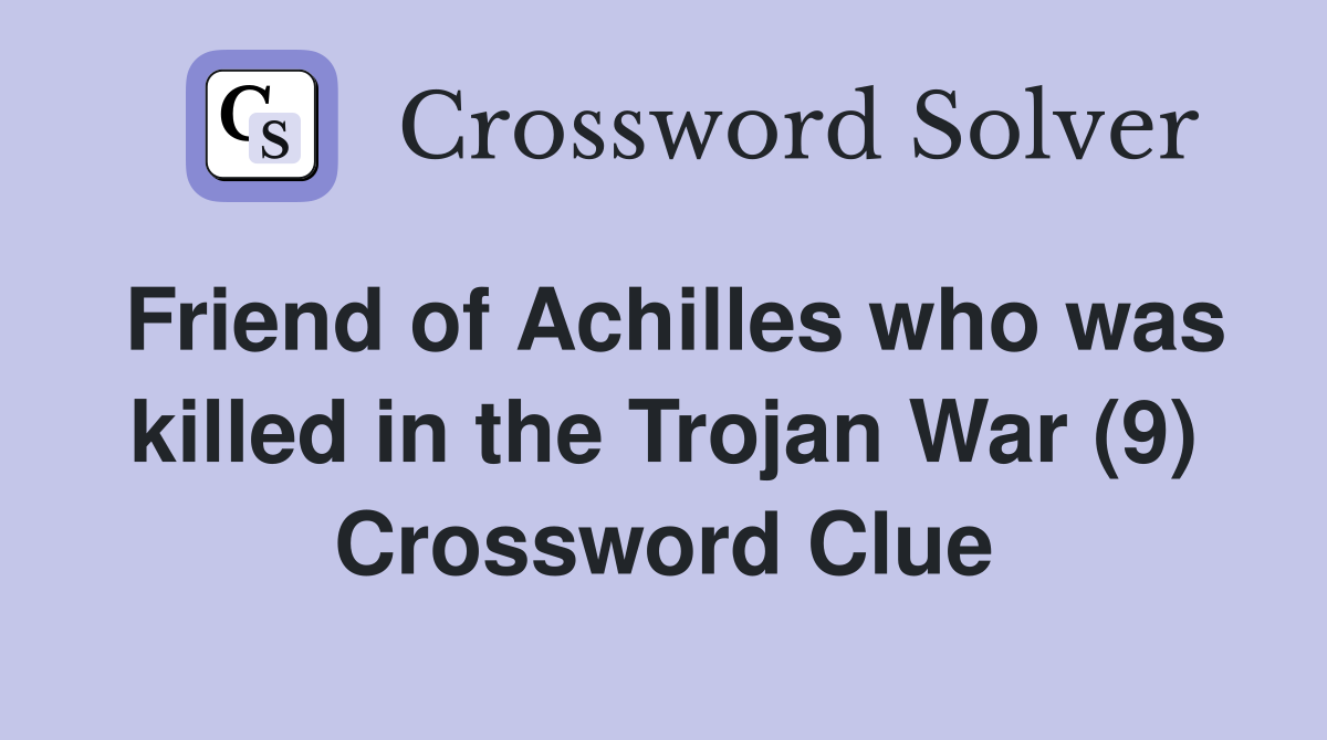 Friend of Achilles who was killed in the Trojan War (9) Crossword
