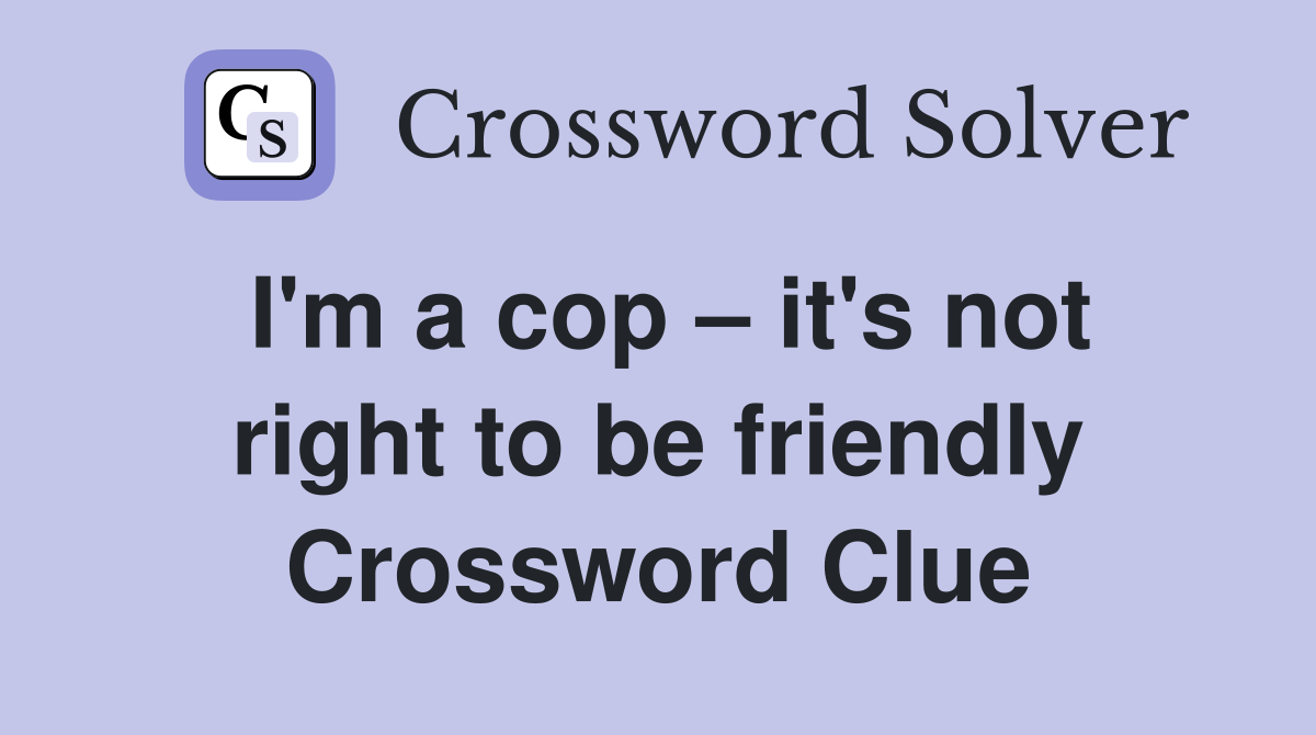 I #39 m a cop it #39 s not right to be friendly Crossword Clue Answers