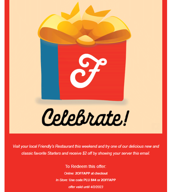 Friendlys Coupon Code: Get $2 OFF this weekend for trying any Starte