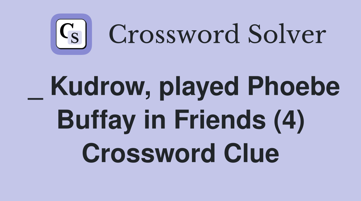 Kudrow played Phoebe Buffay in Friends (4) Crossword Clue Answers