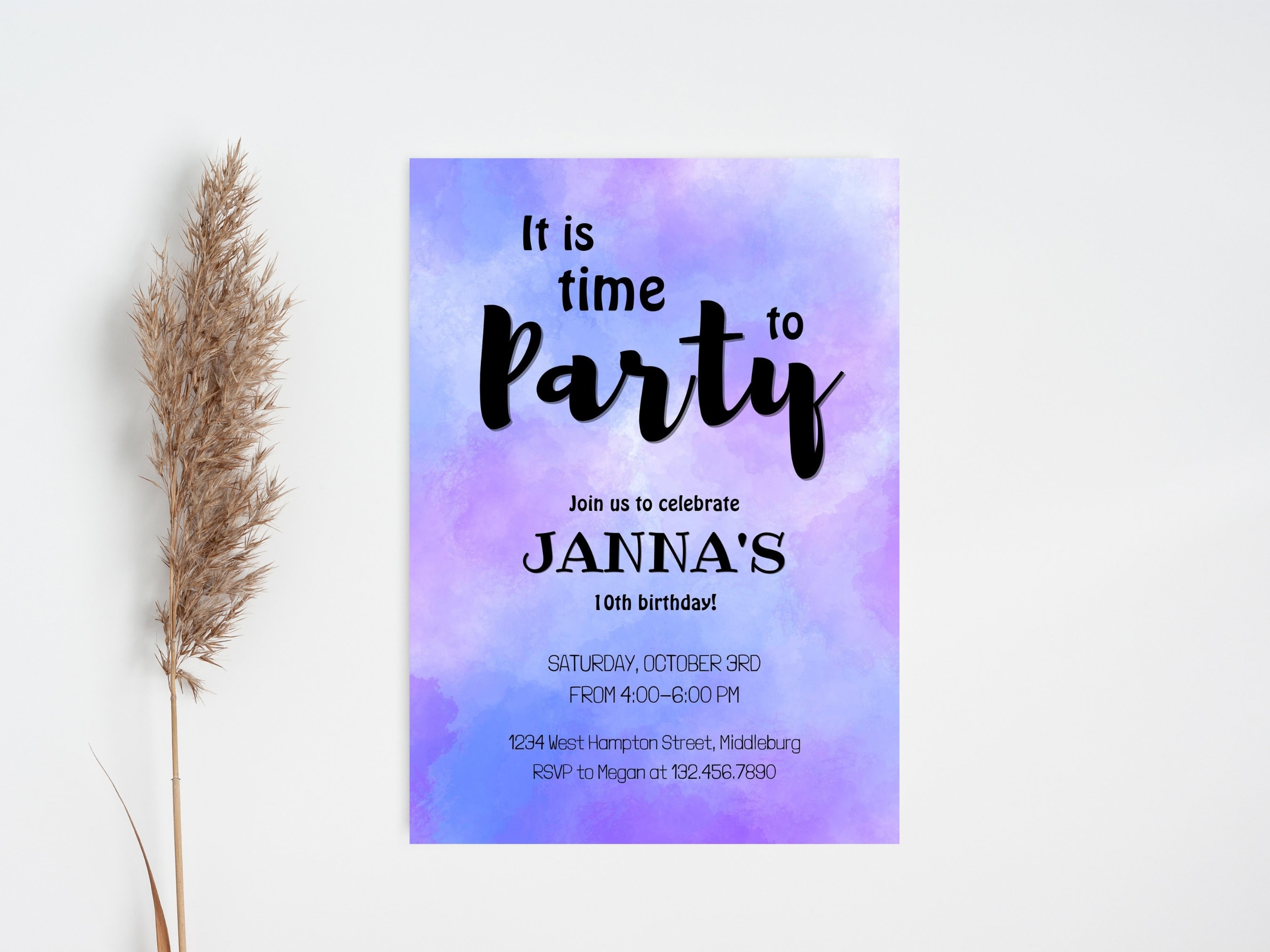 Purple Birthday Invitation Template Purple Lover Party Editable Any