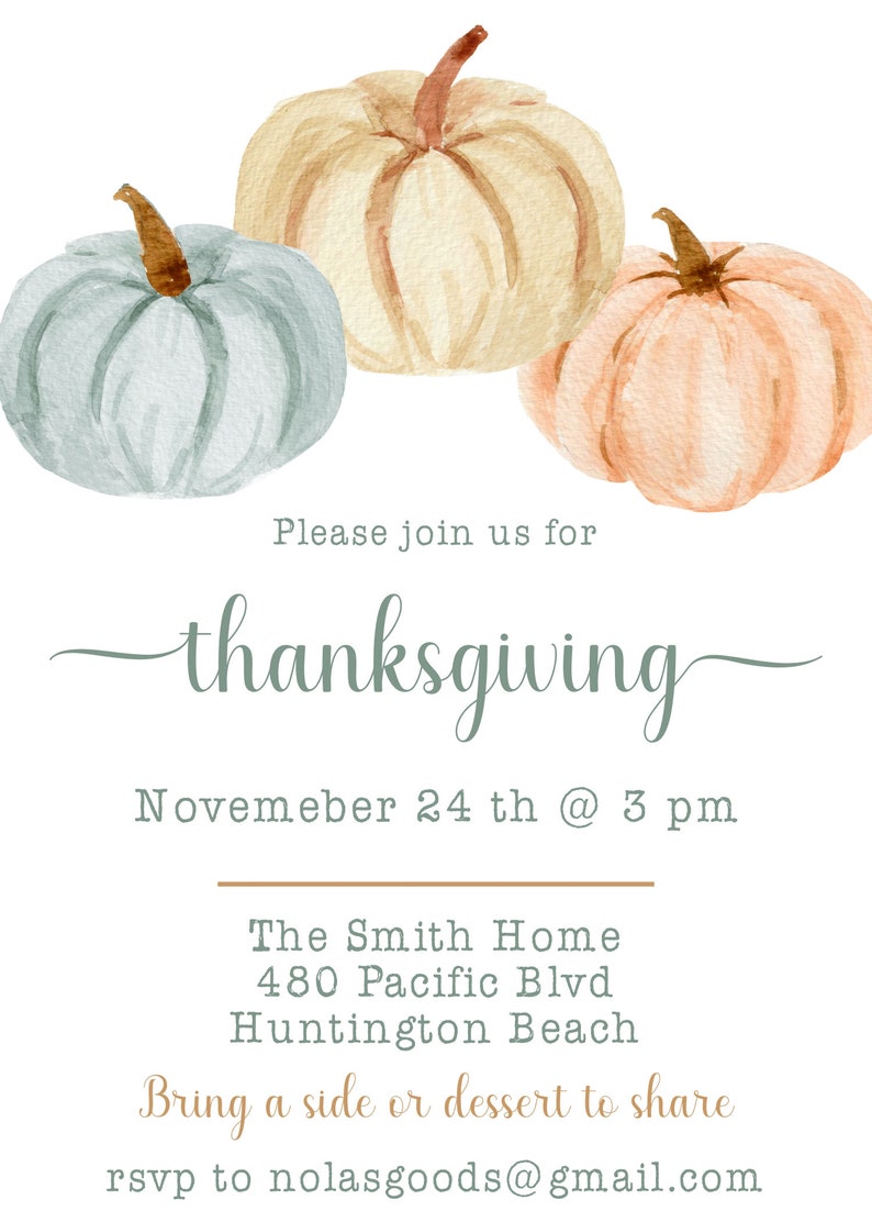 Pumpkin thanksgiving dinner invitation friendsgiving invite editable