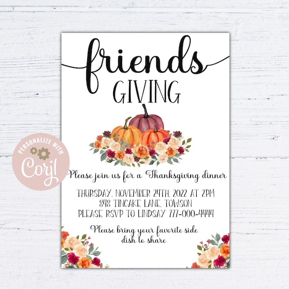 Friendsgiving Invite Template Instant Download Friendsgiving Invite