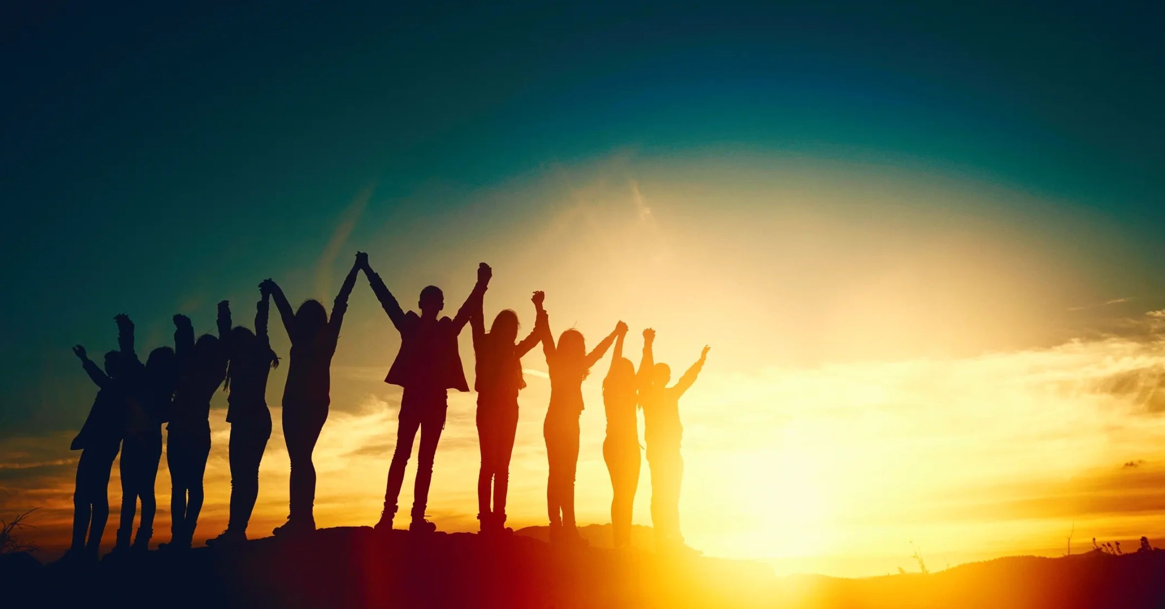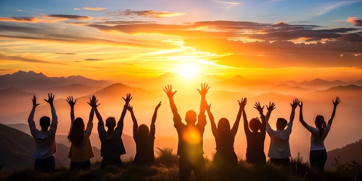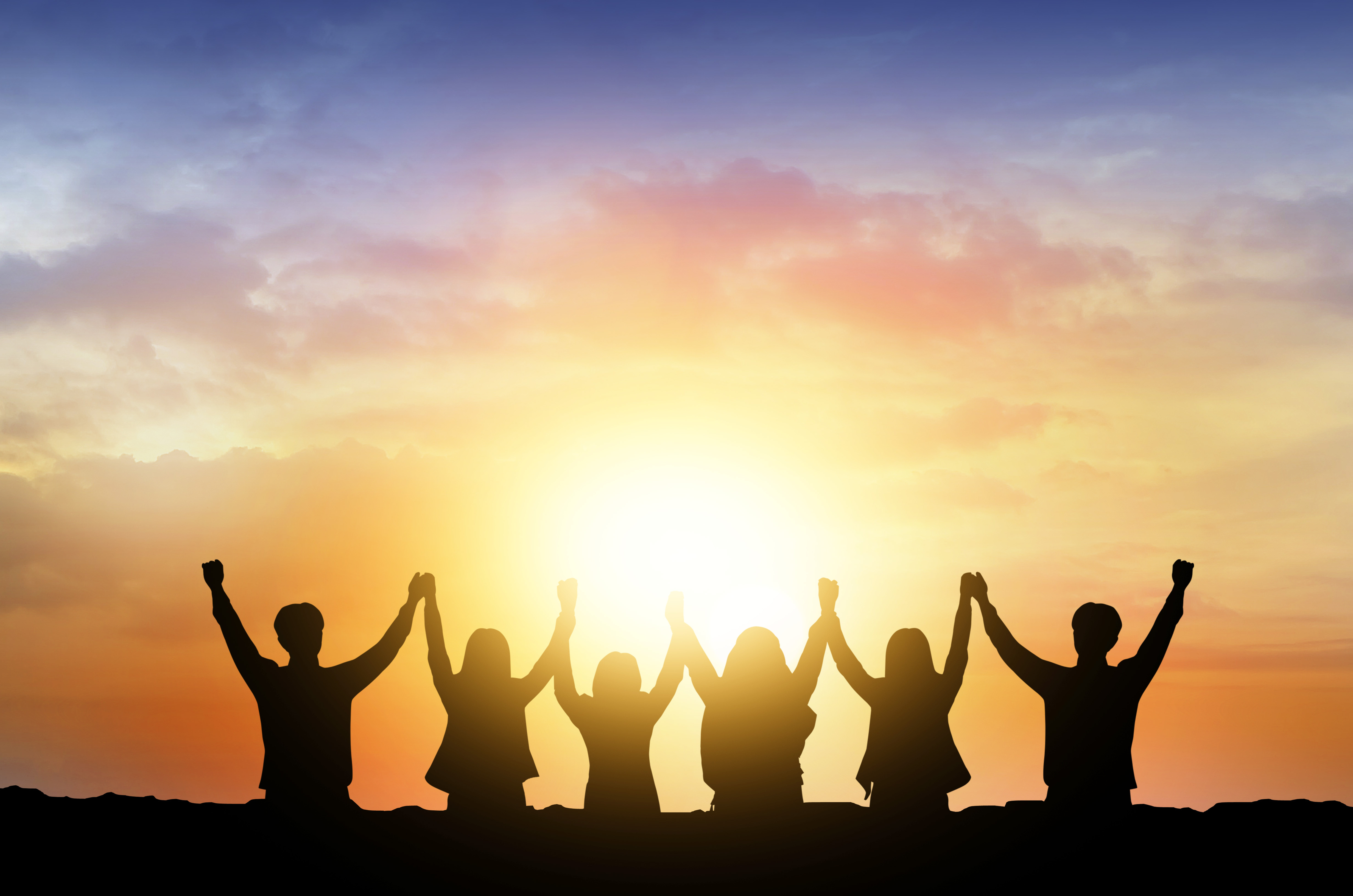 Silhouette of happy team making high hands 1900674 Stock Photo at Vecteezy