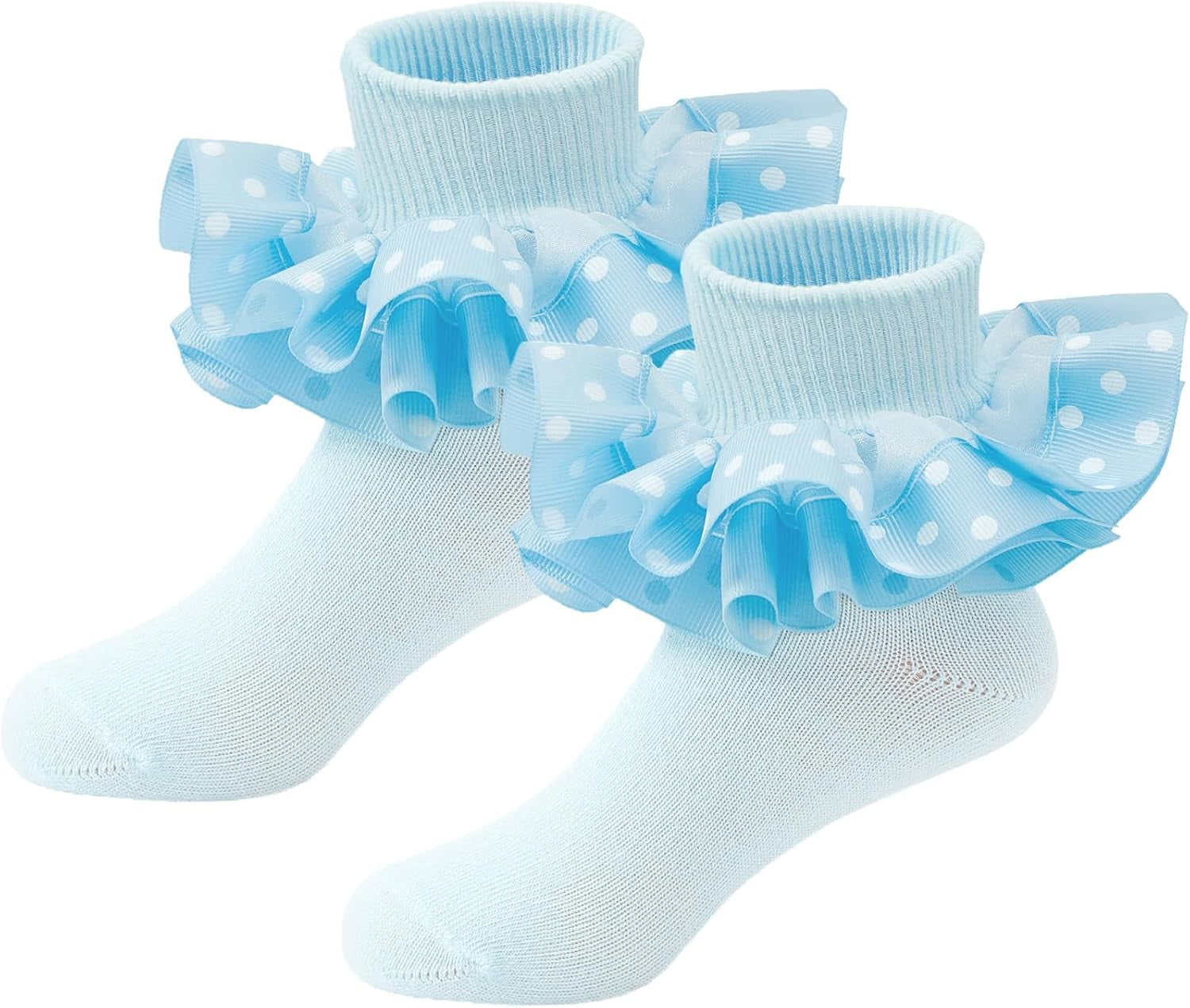 1Pairs Ruffle Socks for Girls Toddler Lace Polka Dot Frilly Dress