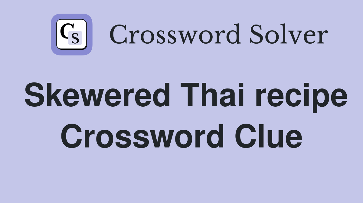 Skewered Thai recipe Crossword Clue Answers Crossword Solver