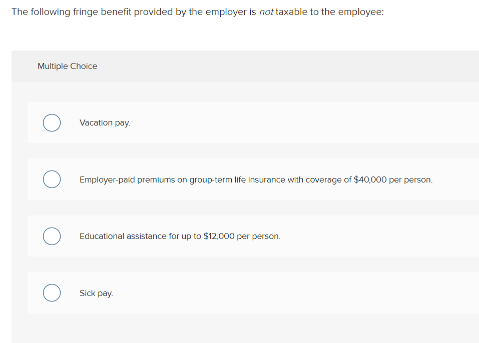 Solved The following fringe benefit provided by the employer Chegg com