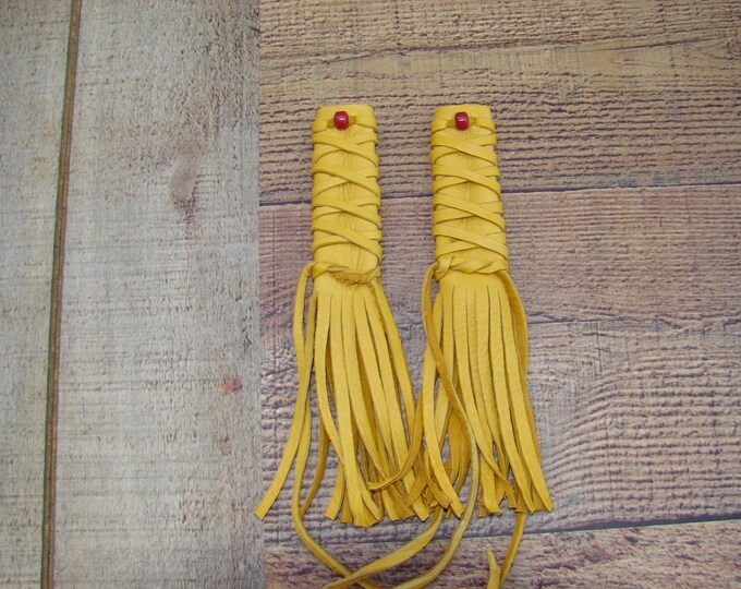 Deerskin Fringed Leather Hair Wraps Tribal Hair Ties Buckskin Braid