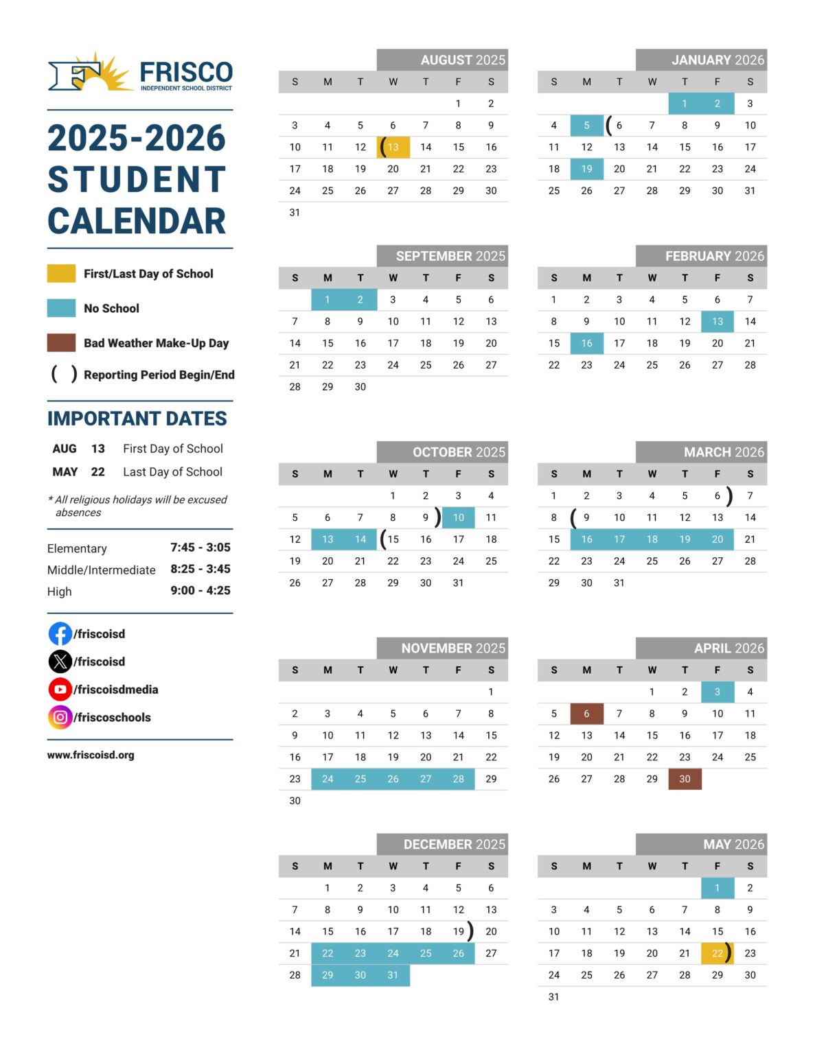 Frisco ISD School Calendar 25 26 PDF EduCounty