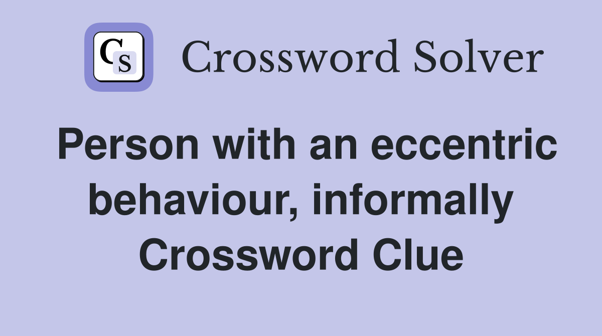 Person with an eccentric behaviour informally Crossword Clue Answers