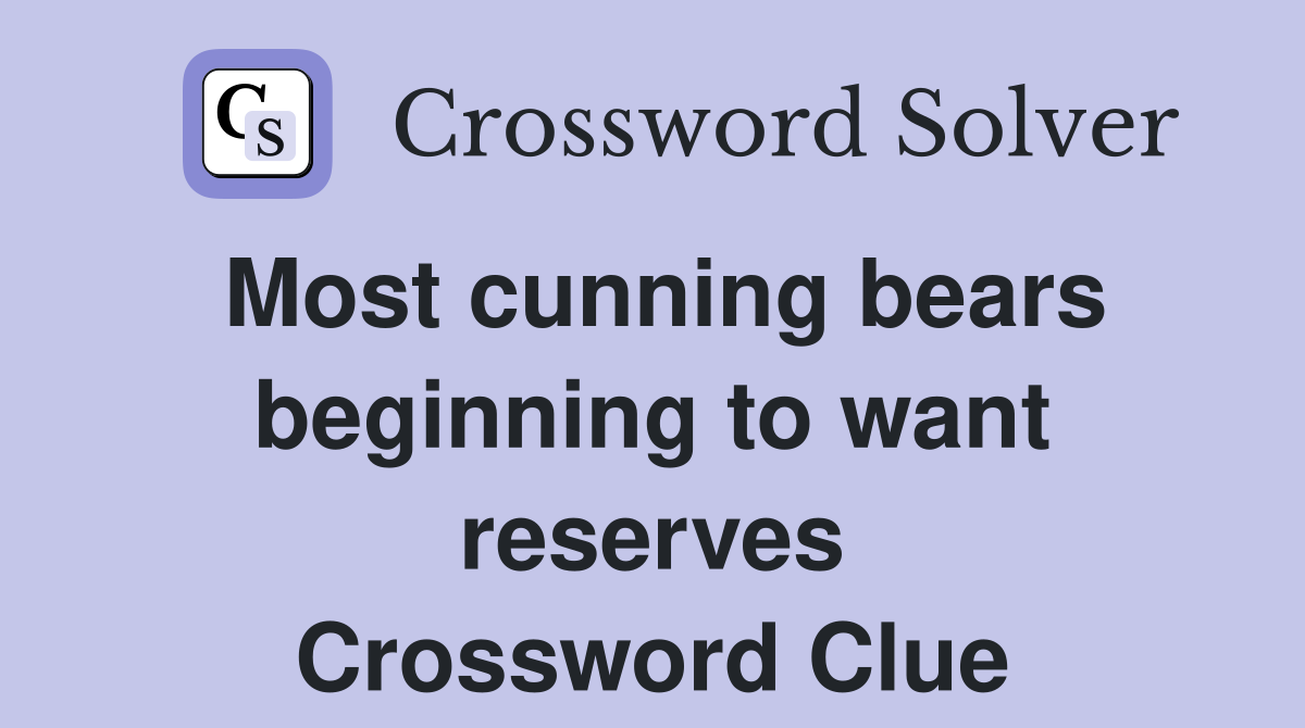 Most cunning bears beginning to want reserves Crossword Clue Answers