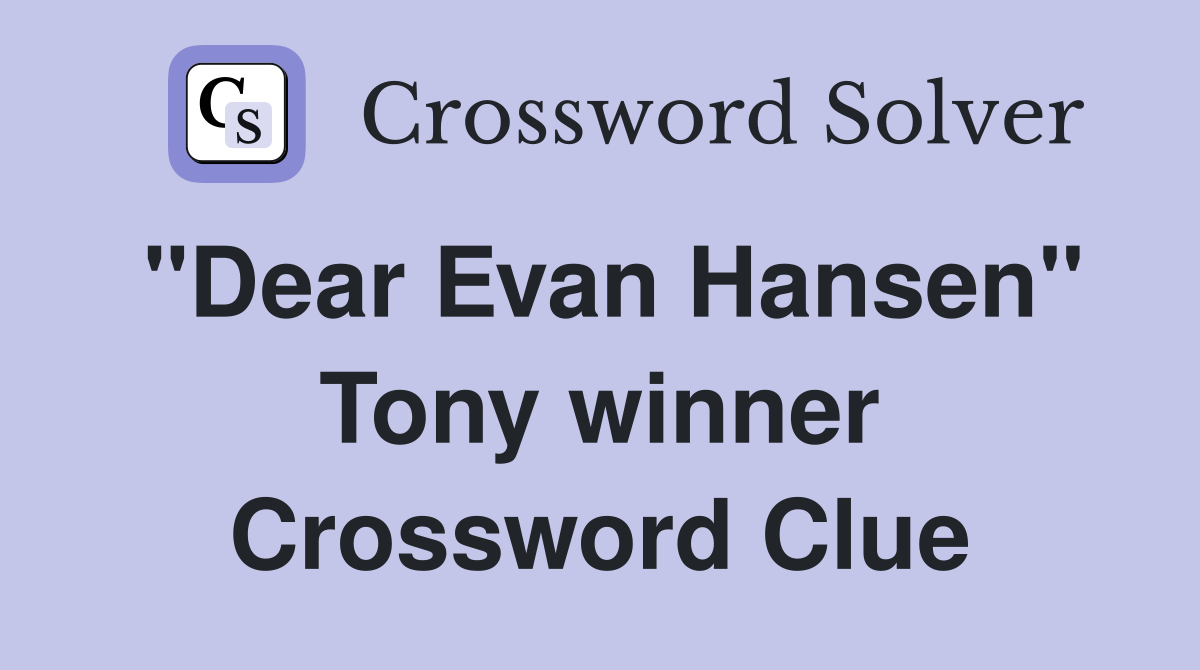 quot Dear Evan Hansen quot Tony winner Crossword Clue Answers Crossword Solver