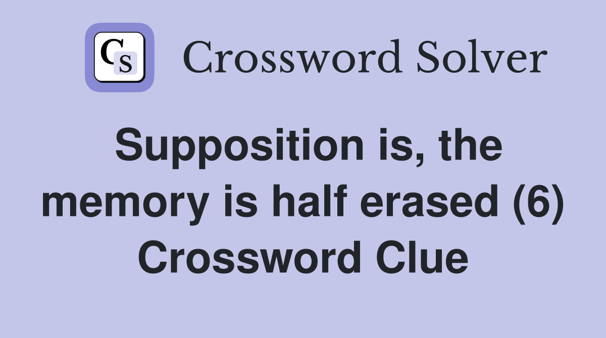 Supposition is the memory is half erased (6) Crossword Clue Answers