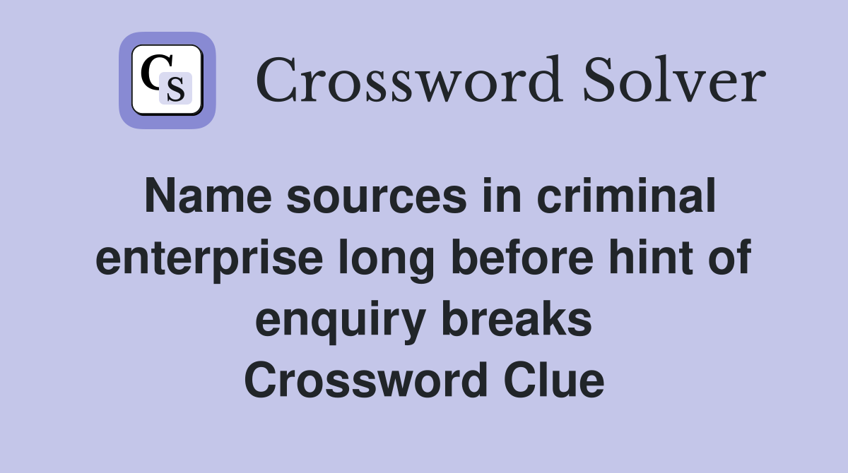 Name sources in criminal enterprise long before hint of enquiry breaks