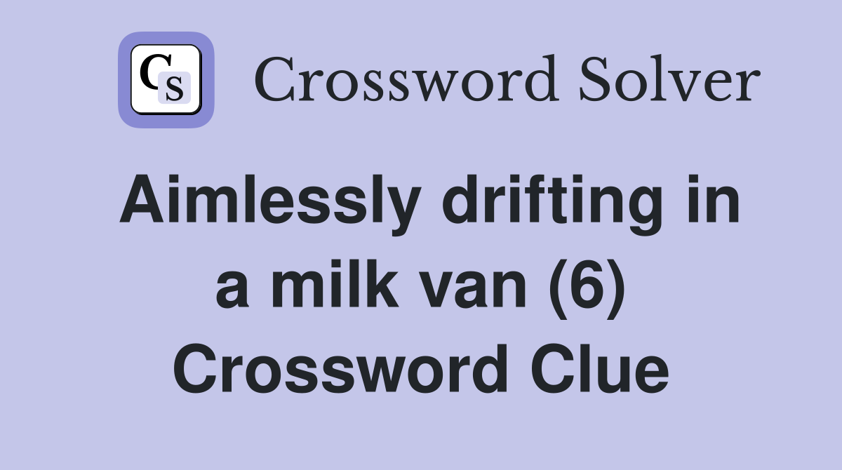 Aimlessly drifting in a milk van (6) Crossword Clue Answers