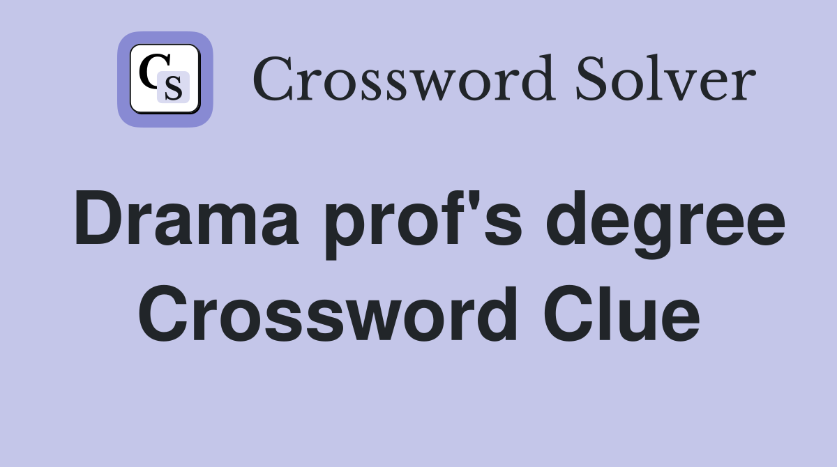 Drama prof #39 s degree Crossword Clue Answers Crossword Solver