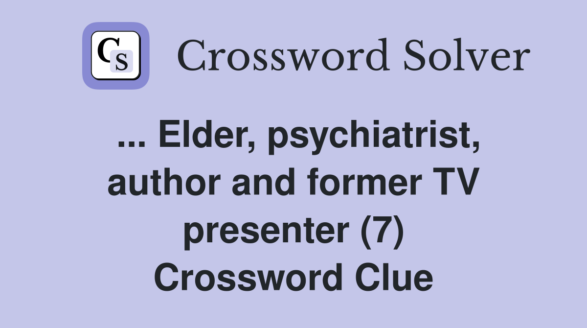Elder psychiatrist author and former TV presenter (7) Crossword