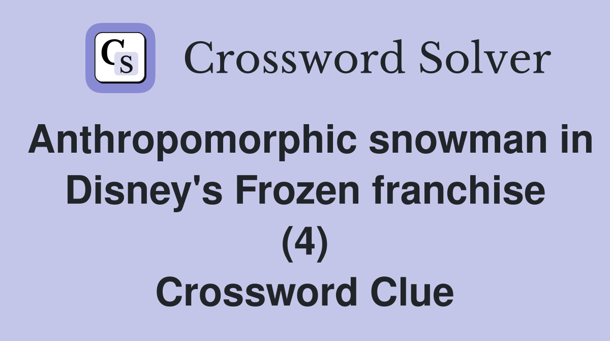 Anthropomorphic snowman in Disney s Frozen franchise (4) Crossword