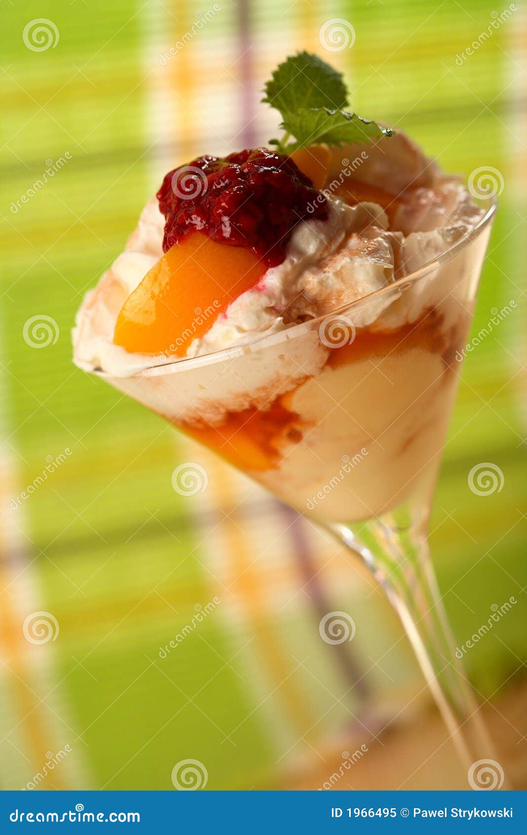 Icy Delight: Fresh Fruit topped Ice Cream Dessert Stock Illustration