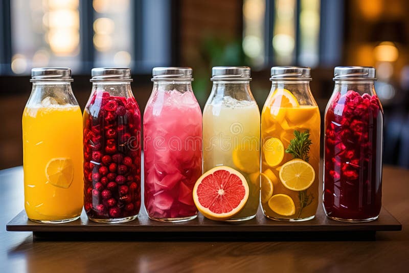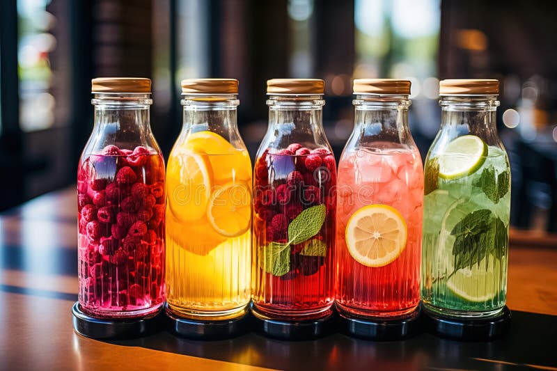 Fruity Soft Drinks in Bottles Generative AI Stock Illustration