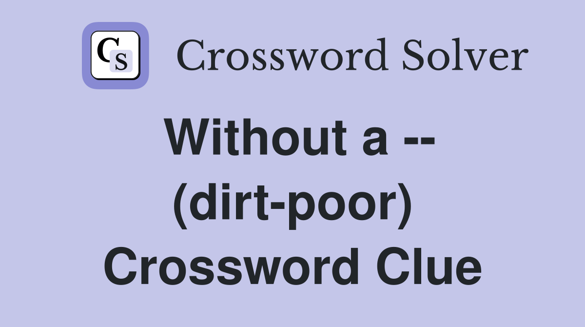 Without a (dirt poor) Crossword Clue Answers Crossword Solver