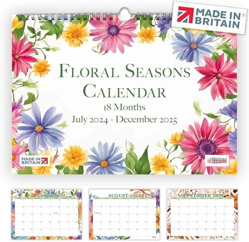 2024/2025 Calendar UK Holidays MADE IN BRITAIN Floral A4 2024 2025 Eco