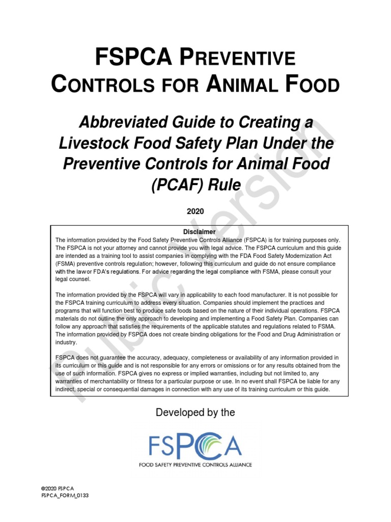 Fspca Form 0133 Guide Creating Livestock Food Safety Plan PV 201030