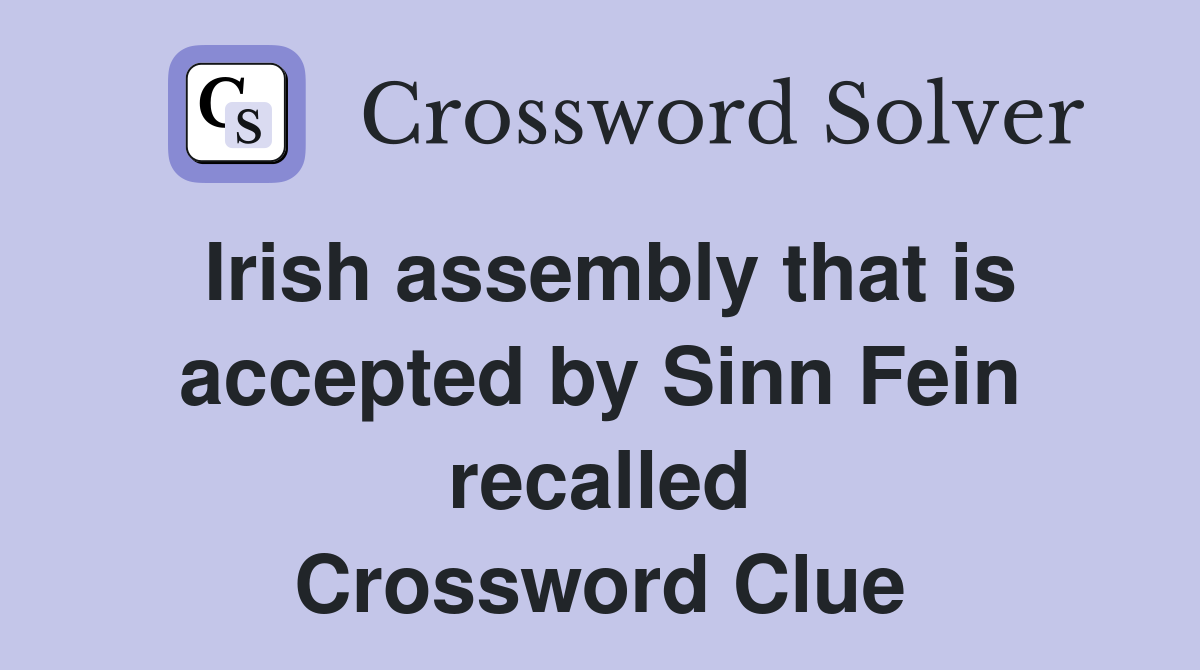 Irish assembly that is accepted by Sinn Fein recalled Crossword Clue