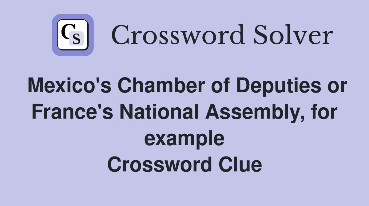 Full legislative assembly Crossword Clue NYT Crossword Answers