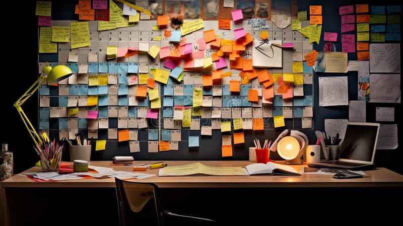 Very busy calendar with many notes and sticky note with help 3D