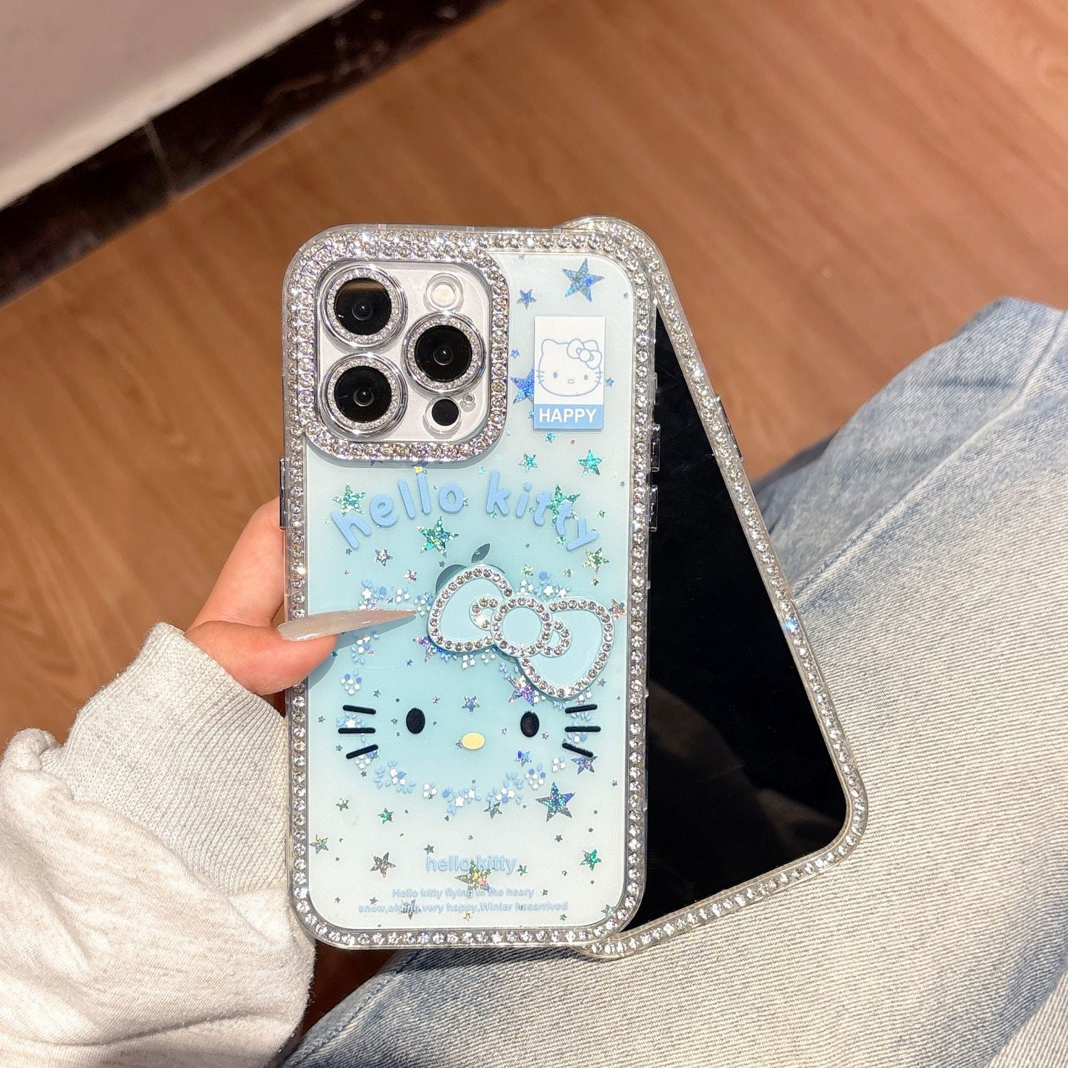 Full Edge Diamond Studded Bowknot KT Cat Compatible with Apple 16 Pro