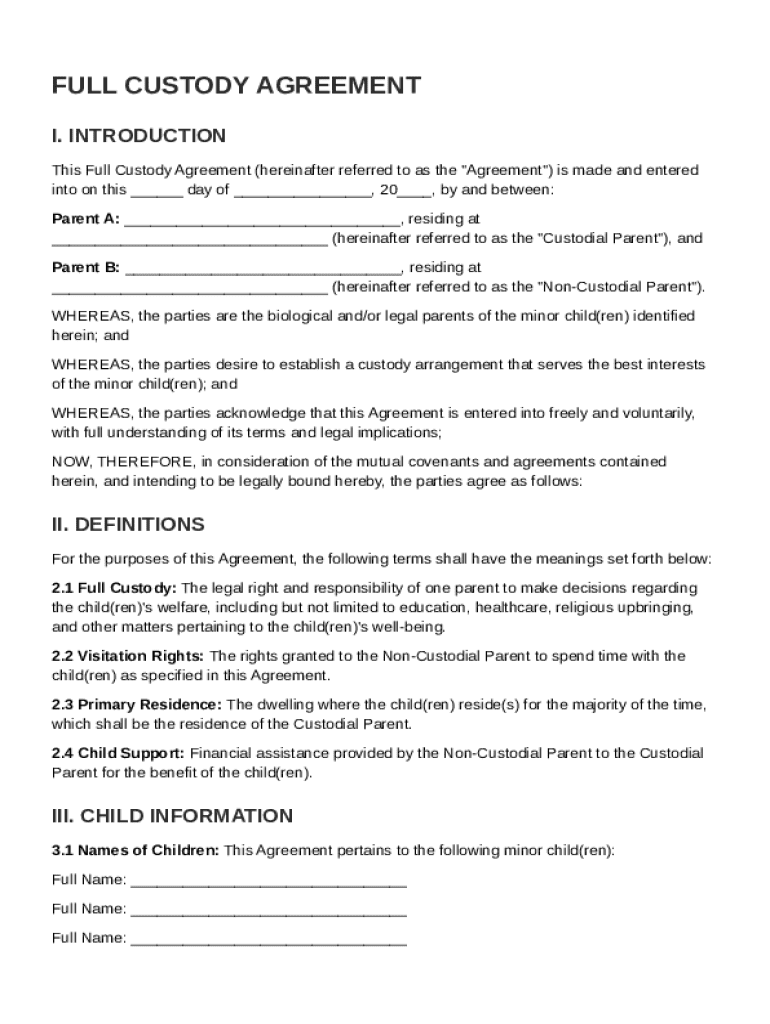 Full Custody Agreement Template