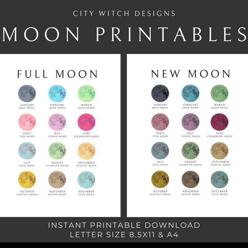 Full Moon Printable Moon Phase Chart Wheel of Year Etsy Moon phase