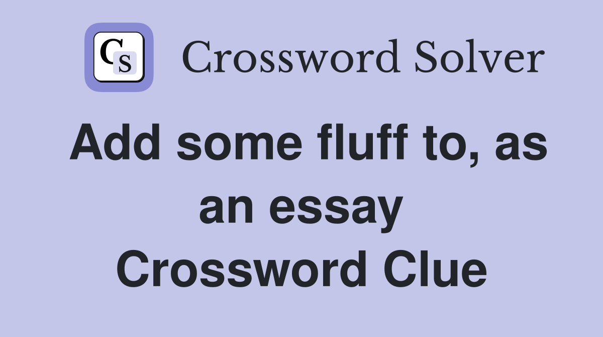 Add some fluff to as an essay Crossword Clue Answers Crossword Solver