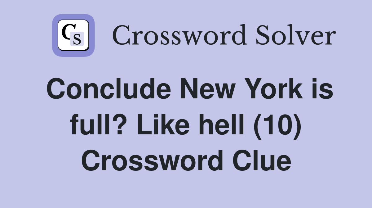 Conclude New York is full? Like hell (10) Crossword Clue Answers
