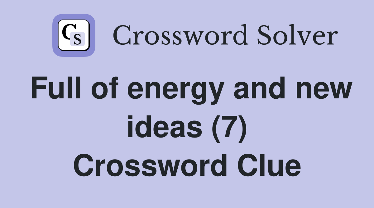 Full of energy and new ideas (7) Crossword Clue Answers Crossword