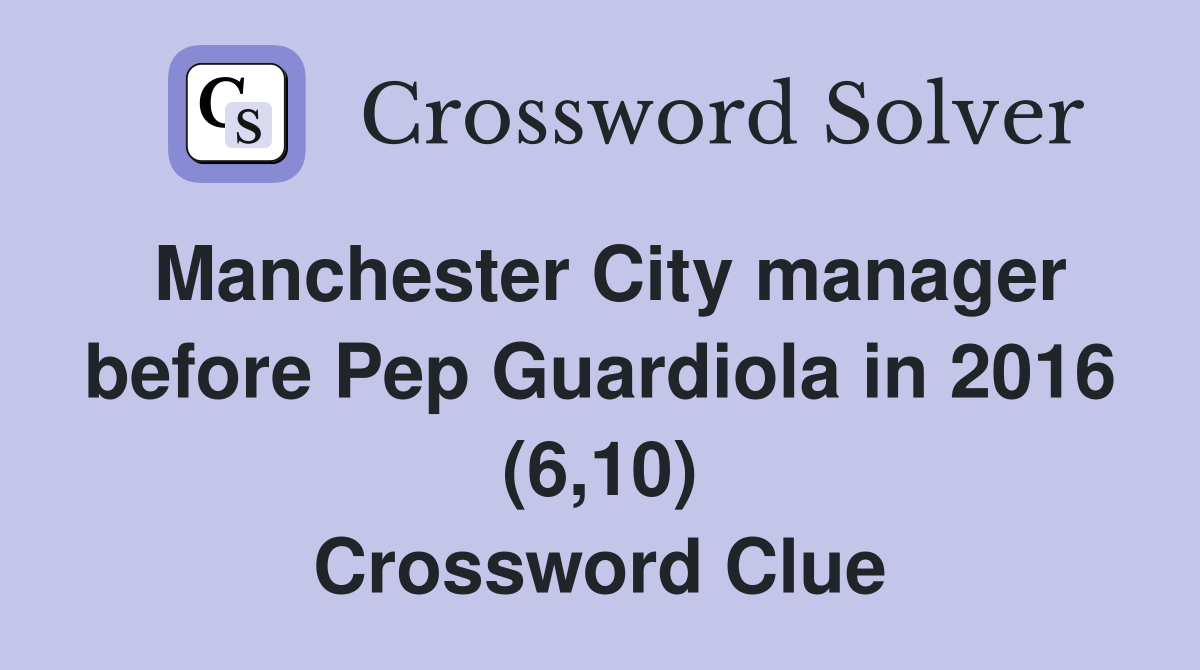 Manchester City manager before Pep Guardiola in 2016 (6 10) Crossword