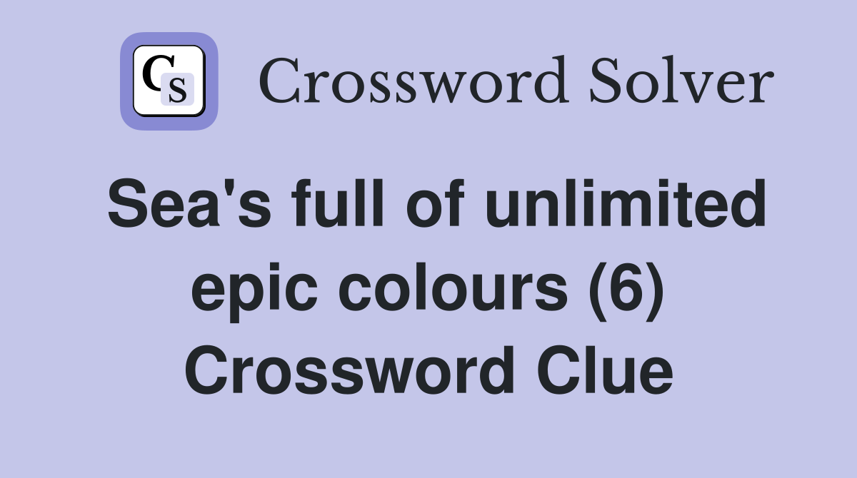 Sea s full of unlimited epic colours (6) Crossword Clue Answers