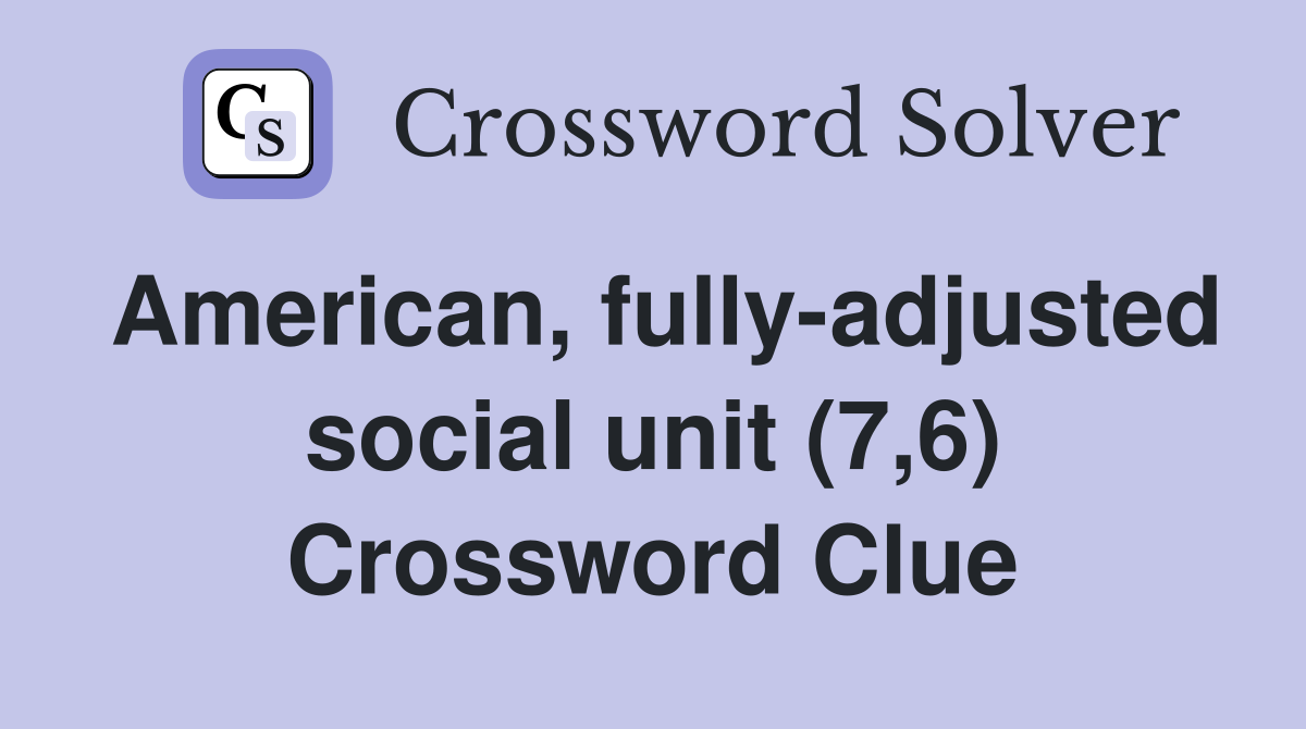 American fully adjusted social unit (7 6) Crossword Clue Answers