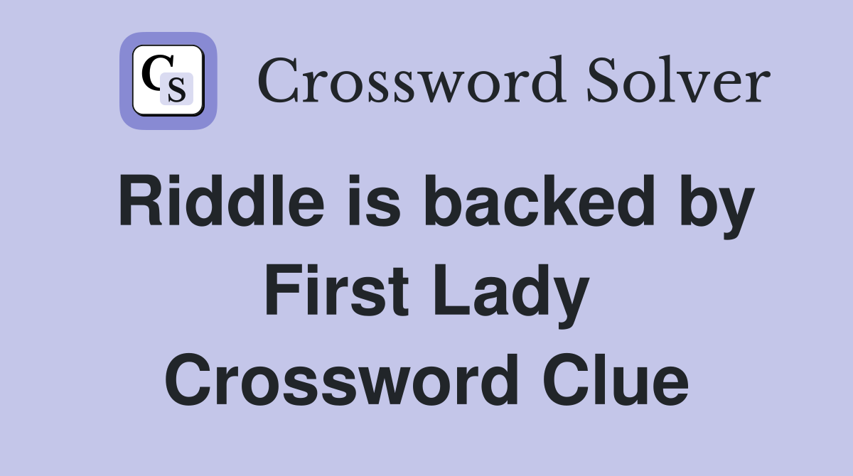 Riddle is backed by First Lady Crossword Clue Answers Crossword Solver