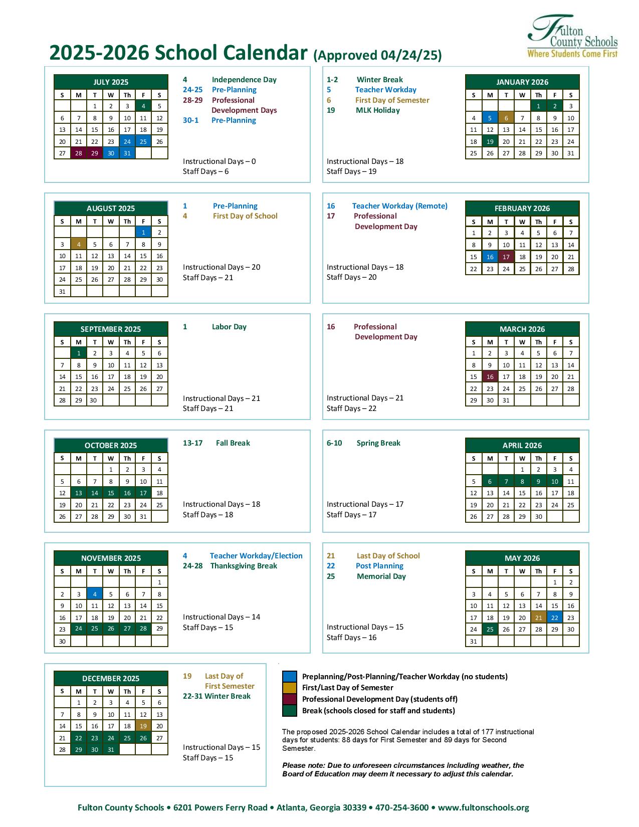 Fulton County Schools Calendar 2025 2026 Academic Schedule